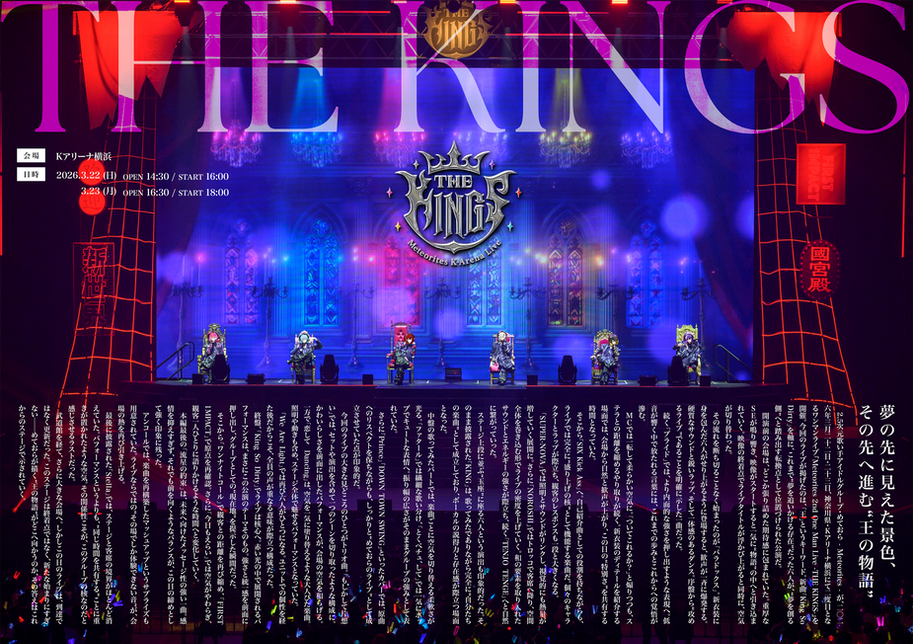 2.5次元歌い手アイドルグループ・めておら - Meteorites - が、2026年3月22日・23日、神奈川県・Kアリーナ横浜にて2度目となるワンマンライブ『Meteorites 2nd One Man Live -THE KINGS-』を開催。今回のライブが掲げたのは、「王」というキーワード。新曲「King So Dirty」を軸に、これまで“夢を追いかける存在”だった6人が、“夢を創る側”へと踏み出す転換点として位置づけられた公演だ。